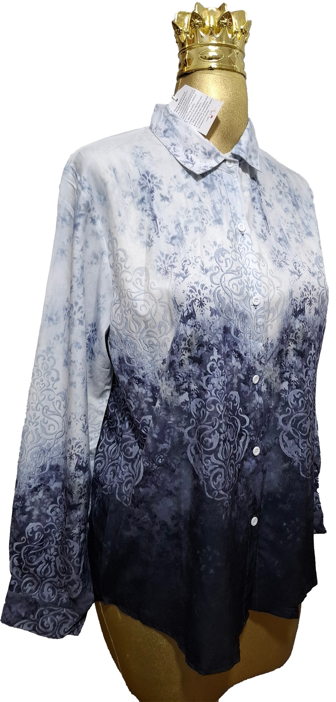 شومیز طرحدار سرمه ای و دکمه دار جنس تک و تکرار نشدنی لیبل دار کد A+1۴