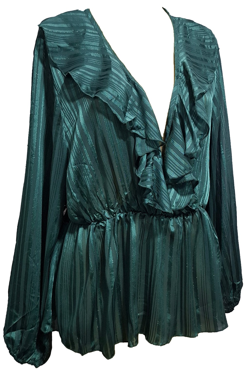 شومیز مجلسی استوک رنگ سبز تیره حریر مچ و کمر کشی و یقه مدل دار کد A+19