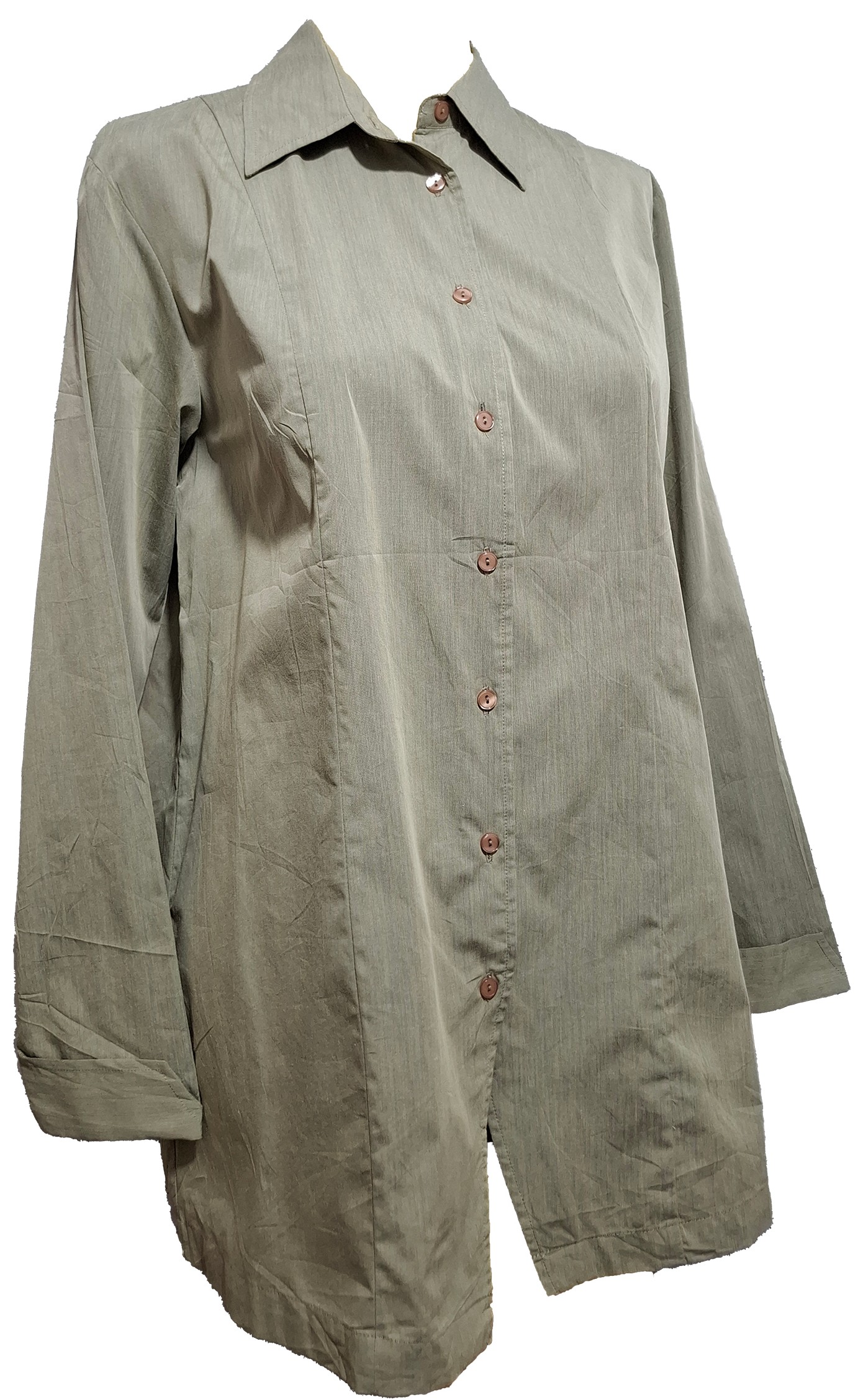 شومیز مجلسی استوک رنگ سبز ارتشی دکمه دار و مچ پاکتی کد A+21