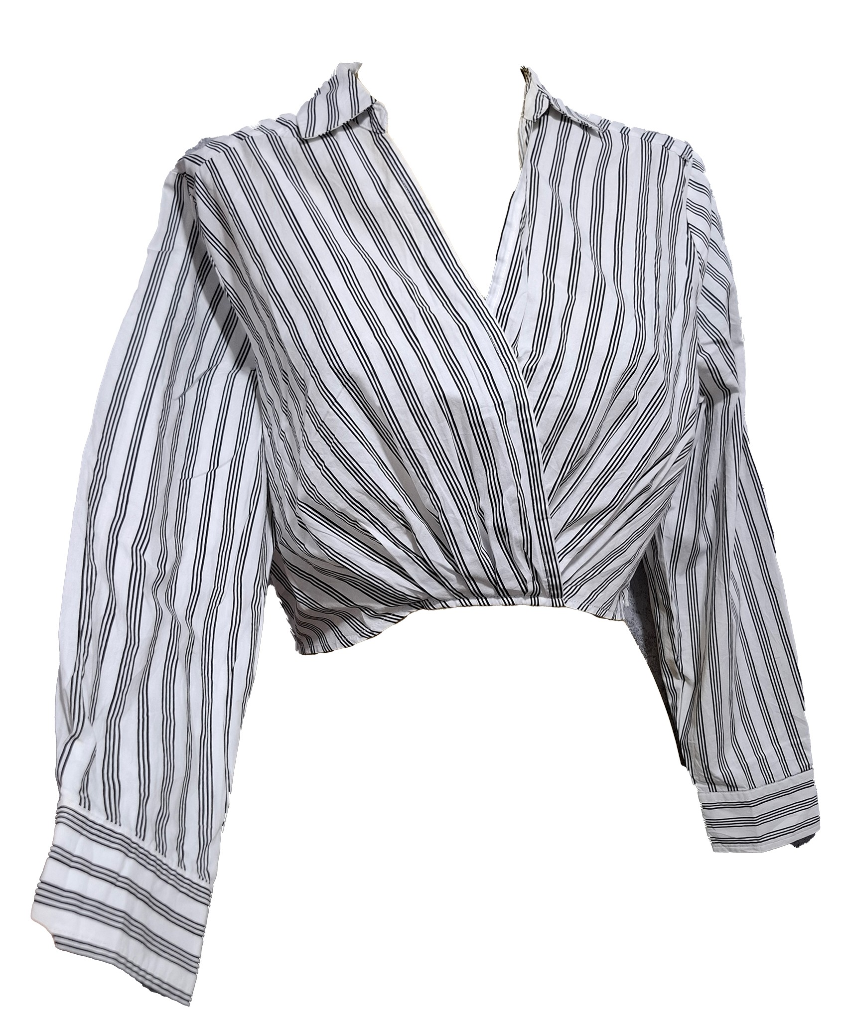 کراپ زنانه طرح راه راه جلو برو بیا یک بغل زیپ دار مچ پاکتی کد A+174