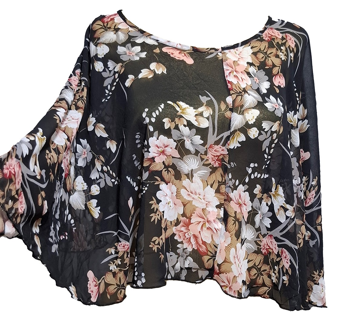 روپوش خفاشی زنانه نو طرح گلدار سیاه کد A+256
