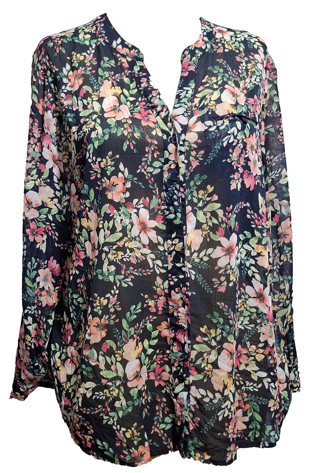 شومیز استوک دکمه دار طرح گل دار کد A+۵8