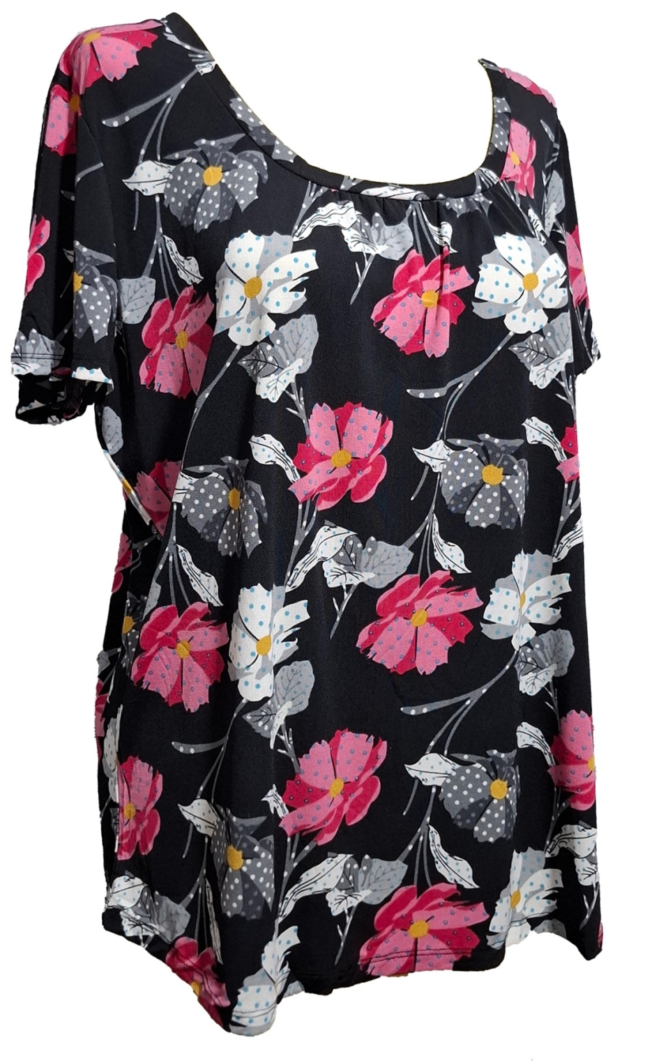 تیشرت مجلسی زنانه استوک نو طرح سیاه گلدار پارچه کشی کد A+6۶