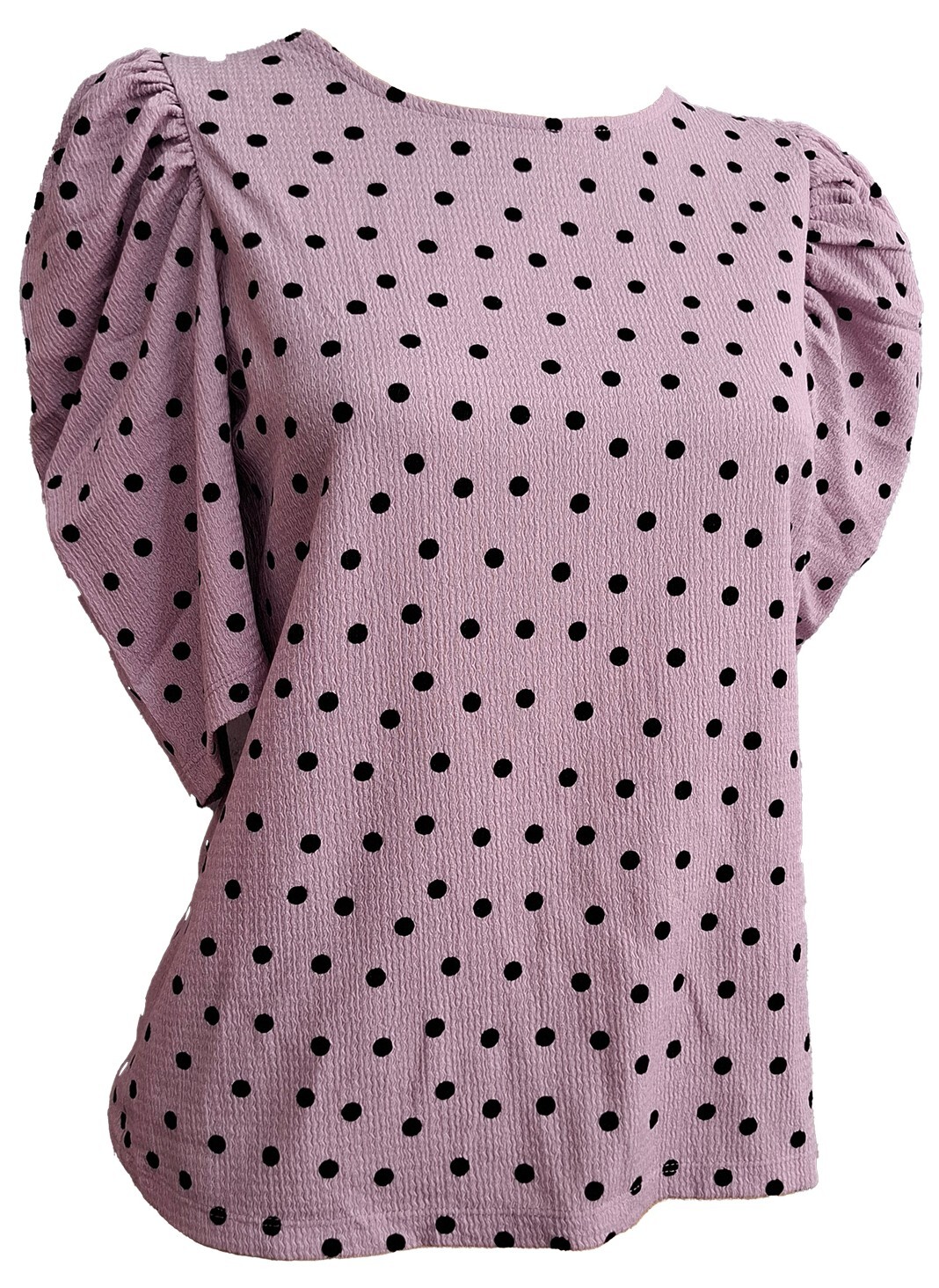 شومیز زنانه رنگ یاسی خال سیاه کد A+30۲