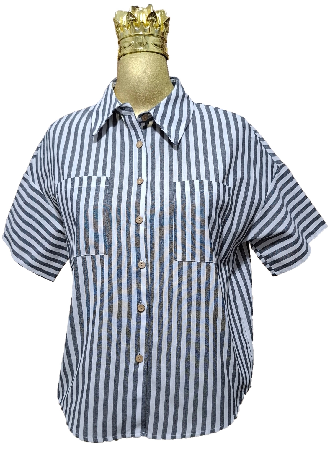 شومیز راه راه اورجینال دکمه دار مدل مچ پاکتی لیبل دار کد A+7